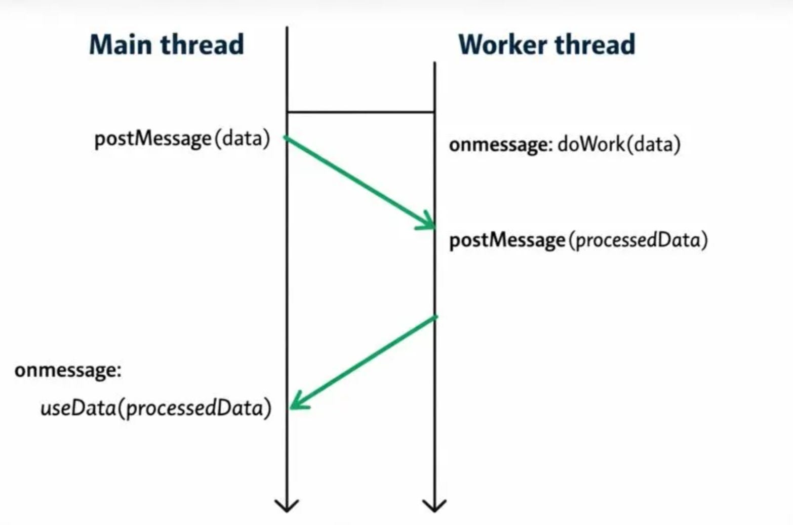可以在這張圖看到,透過 Web Worker,假如今天有某個需要花比較多時間的運算,就先透過 postMessage 放到 Worker 的執行緒做運算;運算完拿到結果後,再傳回主要執行緒,以平行的方式進行處理,這樣就能不阻塞主要執行緒。